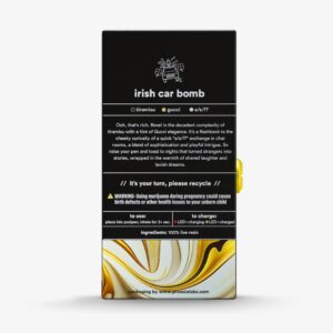 Flavor plays a key role in the Irish Car Bomb experience. Each puff delivers a bold and balanced profile featuring subtle sweetness, light creamy notes, and gentle earthy undertones. Together, these flavors create a smooth and enjoyable inhale that remains satisfying from start to finish. Furthermore, the terpene-rich formulation enhances both taste and effects, offering a well-rounded vaping experience.